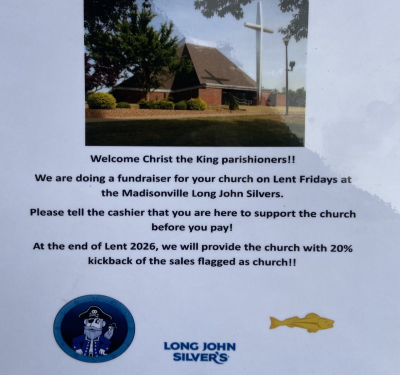 KNIGHTS OF COLUMBUS FISH FRY: 5:00 - 7:00 PM - Gym SHADOW STATIONS OF THE CROSS: 5:30 PM - Church